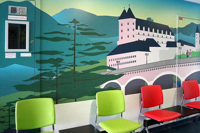 Parmi les projets financés grâce au soutien de Pena Kimio, notons la fresque murale qui égaye les murs du service oncologie situé au 4ème étage du site de Saint-Léon à Bayonne, l’installation de panneaux lumineux décoratifs sur les murs et plafonds dans plusieurs chambres de l’hôpital de jour, et très prochainement la pause d’une caméra en salle d’attente permettant à l’équipe d’être informée de la présence d’un patient.