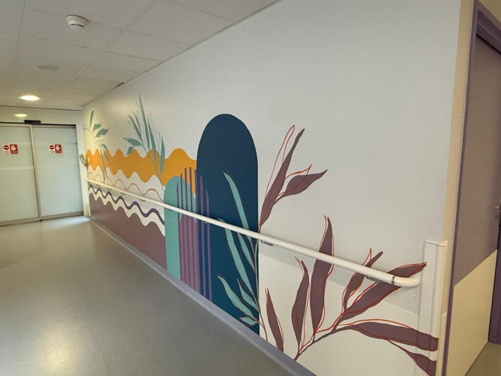 Aujourd’hui, cette fresque illumine le quotidien des patients et du personnel du service, un vrai rayon de couleur et d’espoir dans leur environnement.