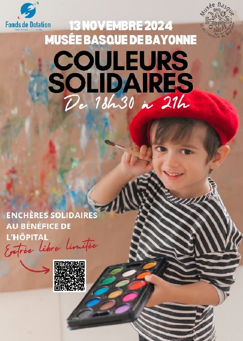 Rejoignez-nous le 13 novembre 2024 de 18h30 à 21h au Musée Basque de Bayonne pour une soirée exceptionnelle dédiée à l’art et à la solidarité !