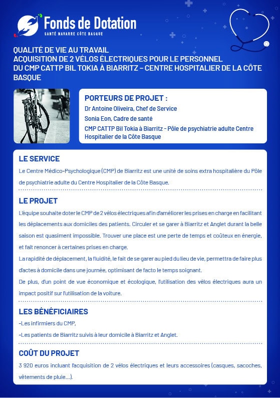 Qualité de vie au travail Acquisition de 2 vélos électriques pour le personnel du CMP CATTP Bil Tokia à Biarritz – Centre Hospitalier de la Côte Basque