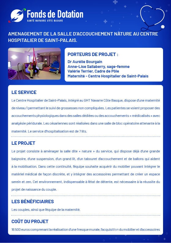 Aménagement de la salle d’accouchement nature au Centre Hospitalier de Saint-Palais.