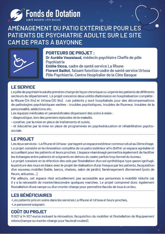 Psychiatrie Aménagement du patio extérieur pour les patients de psychiatrie adulte sur le site Cam de Prats à Bayonne