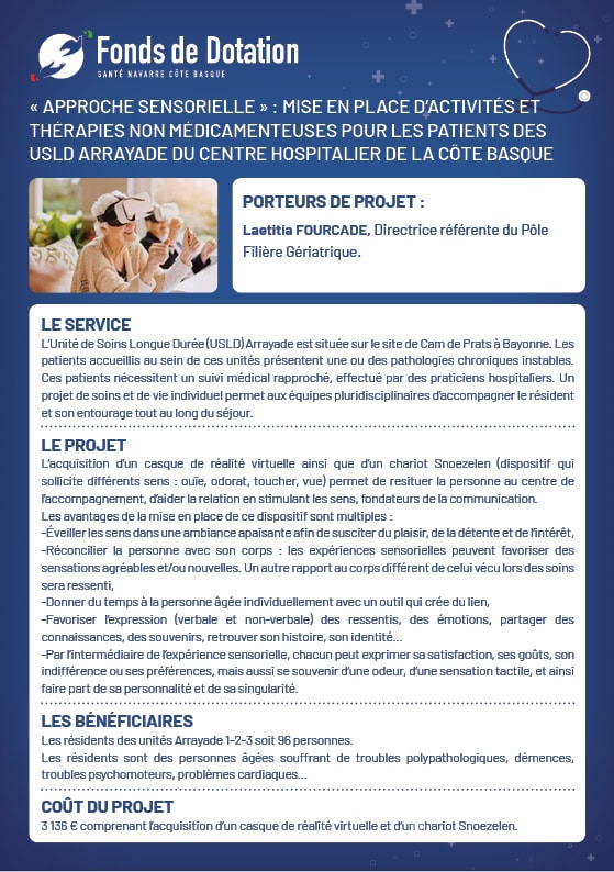 Gériatrie « Approche sensorielle » : mise en place d’activités et thérapies non médicamenteuses pour les patients des USLD Arrayade du Centre Hospitalier de la Côte Basque