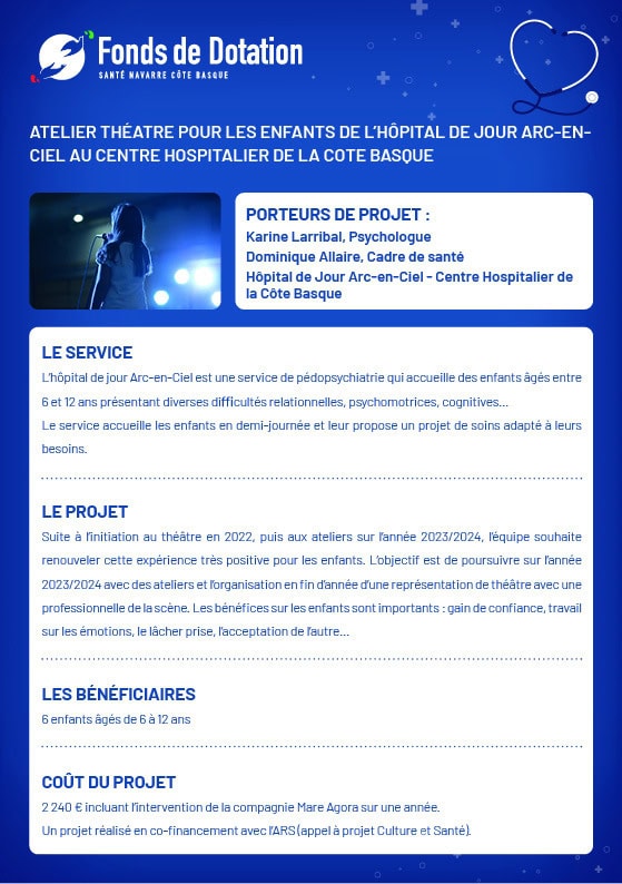 Enfance Atelier théâtre pour les enfants de l’Hôpital De Jour arc-en-ciel au Centre Hospitalier de la Côte Basque