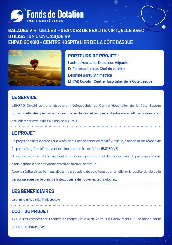 Gériatrie Balades virtuelles – séances de réalite virtuelle avec utilisation d’un casque RV – EHPAD Goxoki – Centre Hospitalier de la Côte Basque