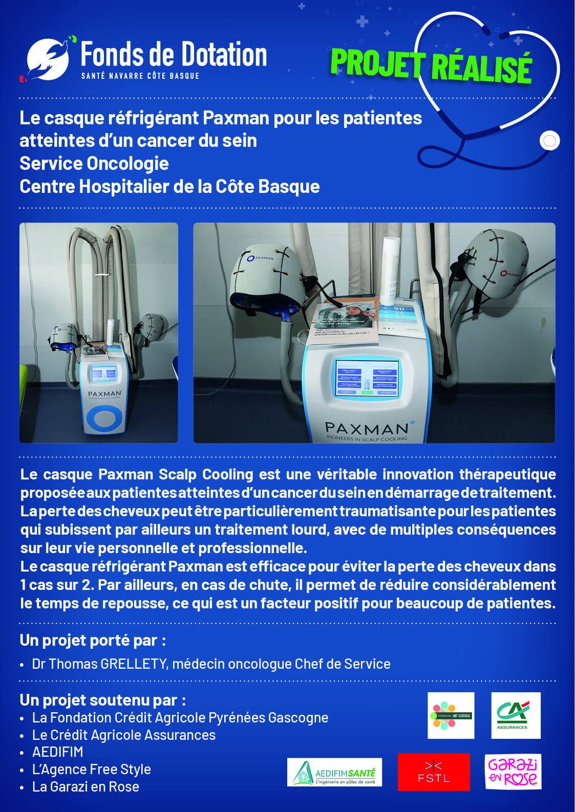 Le casque réfrigérant Paxman pour les patientes atteintes d’un cancer du sein Service Oncologie Centre Hospitalier de la Côte Basque
